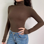 Lira Sweater with Turtleneck is a fitted model made of stretchy striped knit fabric. The high neckline and long sleeves provide comfort on cooler days, while the simple cut makes the sweater suitable for many outfits.